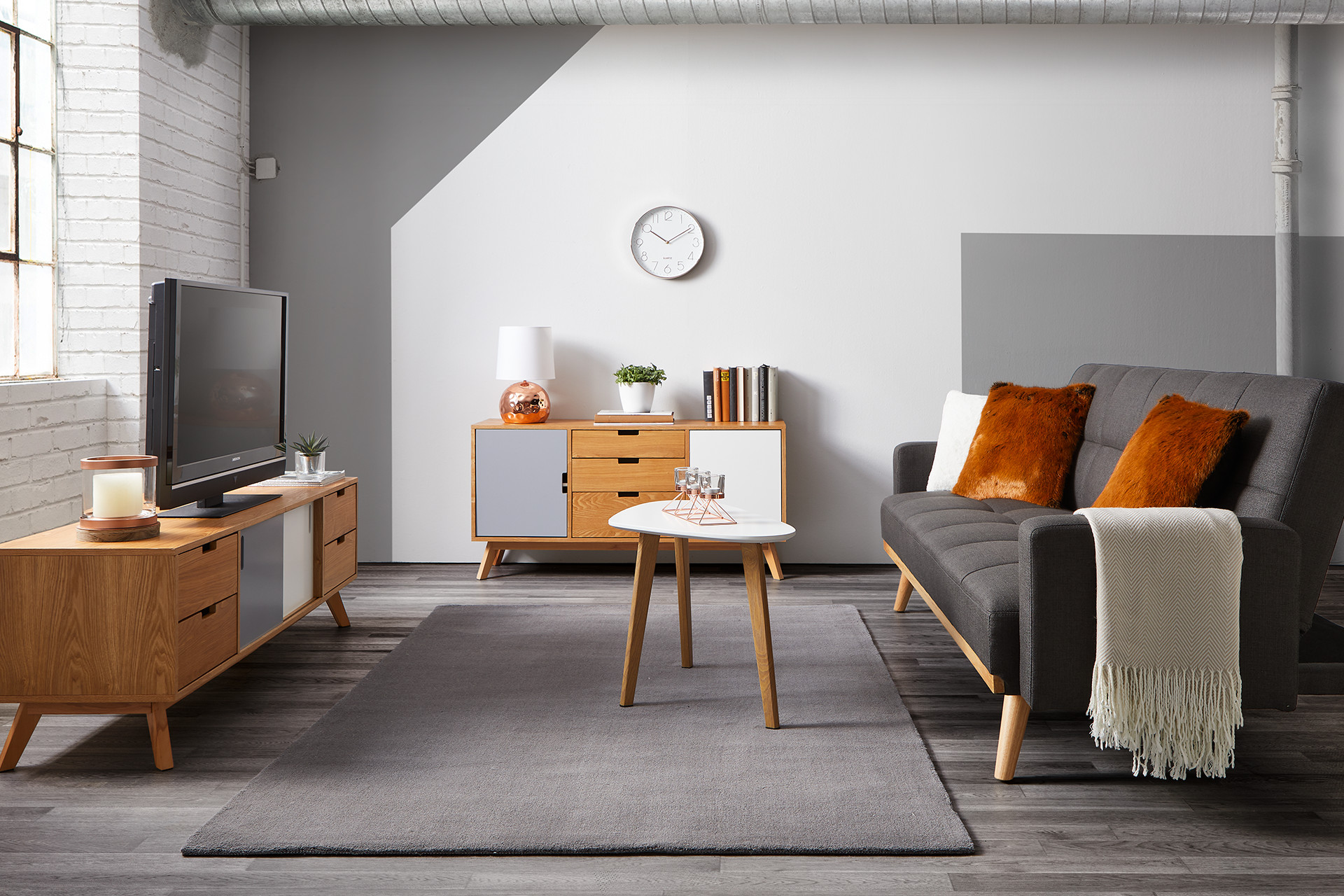 Egal ob kompakter 32-Zoll-Bildschirm oder Mega-Display mit beeindruckenden 77 Zoll, es gibt für jede Bildschirmgröße das passende TV-Möbel. Damit die Heimkino-Ecke optisch ausgeglichen wirkt, sollte die Länge der TV-Bank breiter sein als der Bildschirm selbst. Bei der Höhe kommt es auf mehrere Faktoren an: Wenn das Display bereits in einer TV-Wandhalterung fixiert ist, muss man darauf achten, dass der TV-Schrank locker darunter passt – einen kleinen Abstand zwischen der Bildschirm-Unterkante und dem TV-