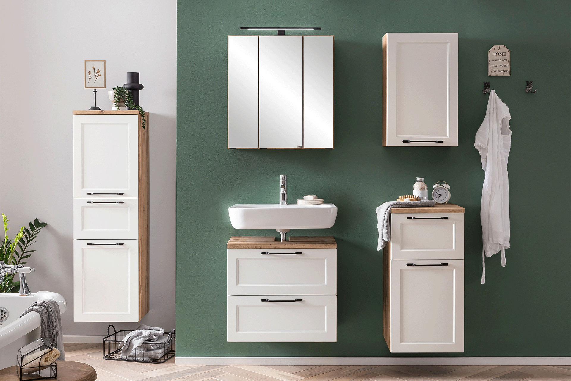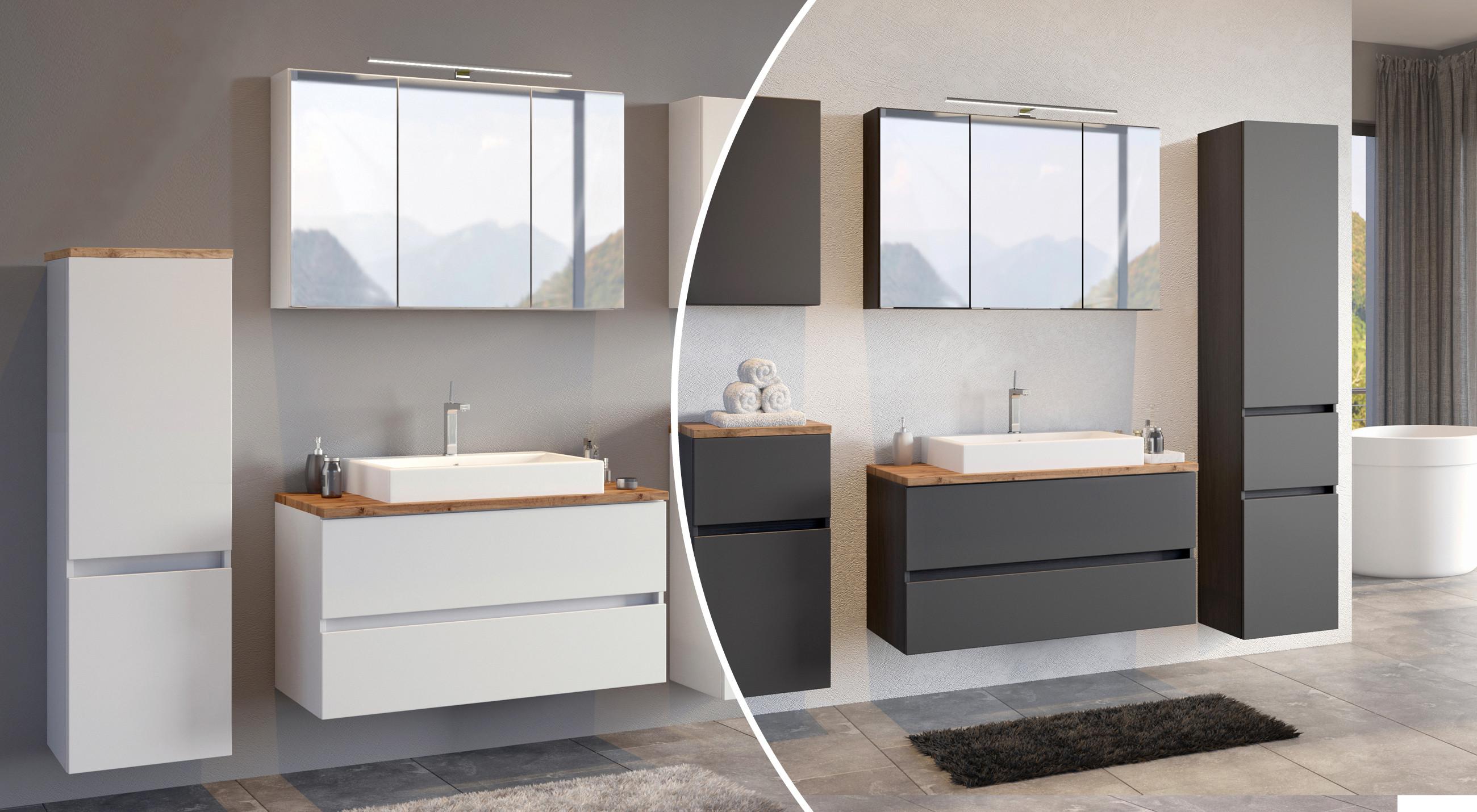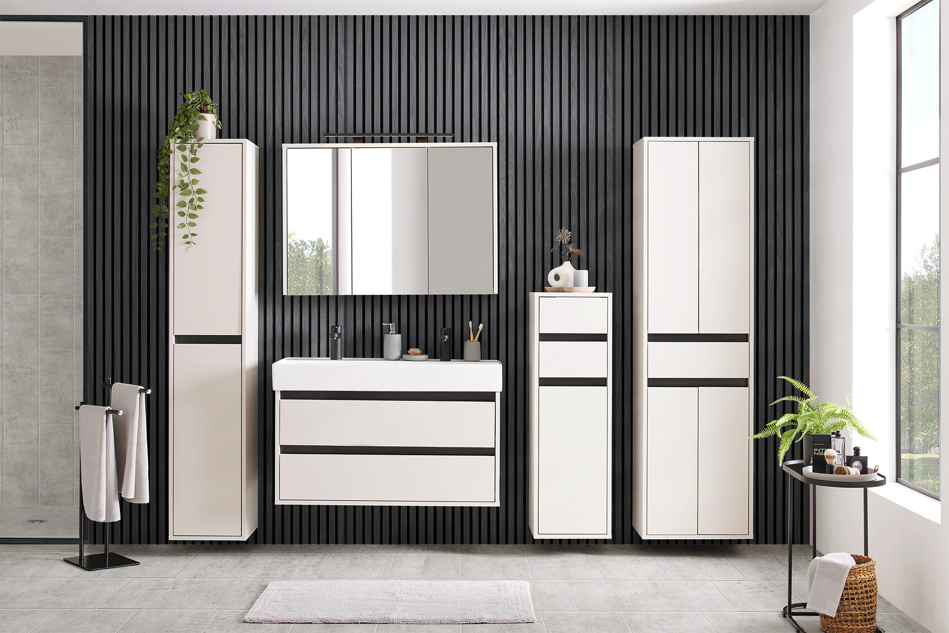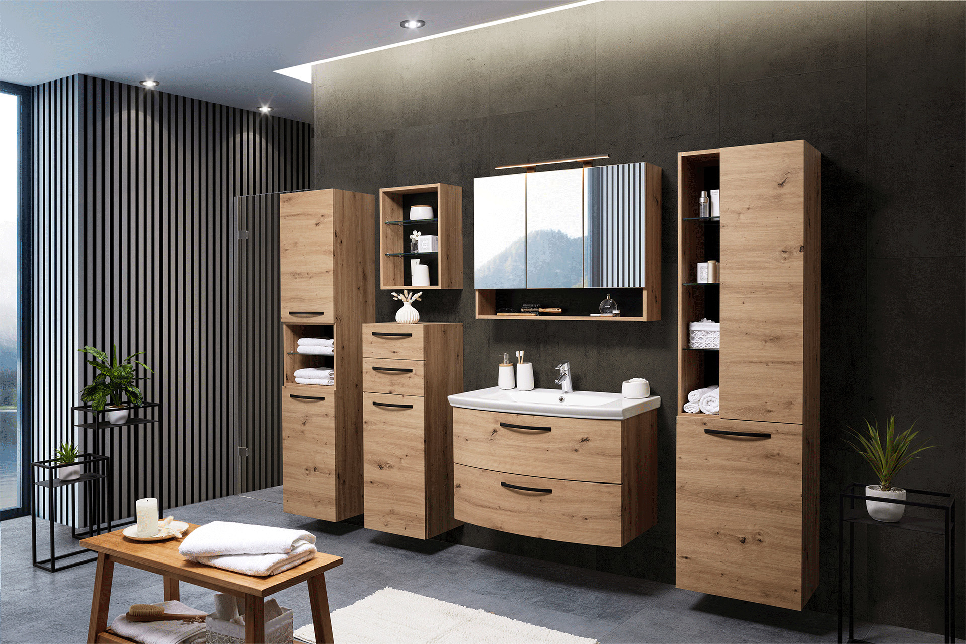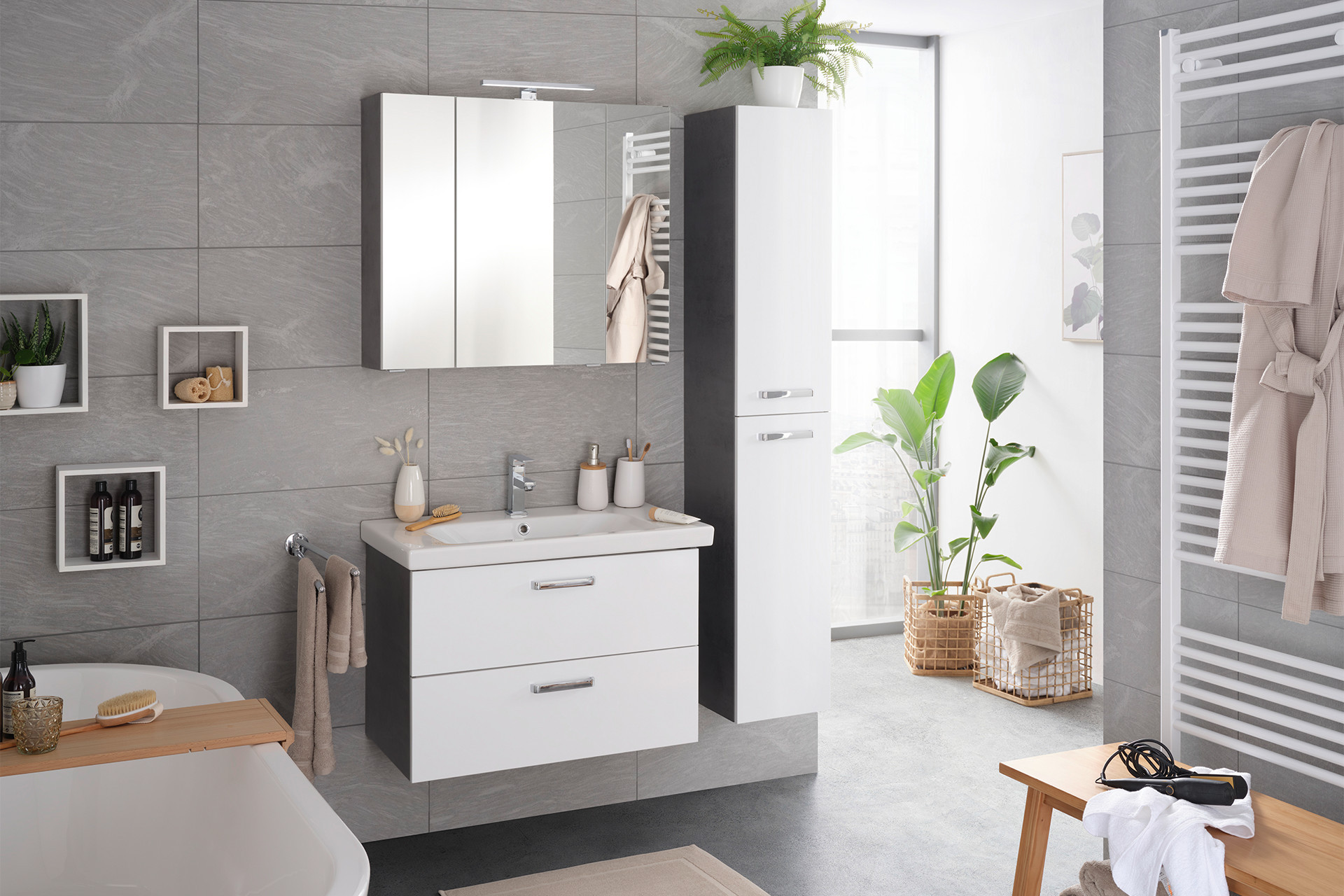 Wer eine Badezimmerserie für übertrieben hält, liegt falsch. Denn hier sollten Sie sich wirklich wohlfühlen. Entspannt ein Schaumbad nehmen oder in Ruhe die Haare frisieren - dafür braucht man eine angenehme Atmosphäre. Die wird Ihnen mithilfe von einem Badezimmerprogramm geboten. Nichts wirkt im Gesamtbild so stimmig wie Hängeschrank, Spiegel und Waschbeckenkombi im gleichen stillvollen Design. mömax bietet Ihnen eine vielfältige Auswahl an verschiedensten Modellen.