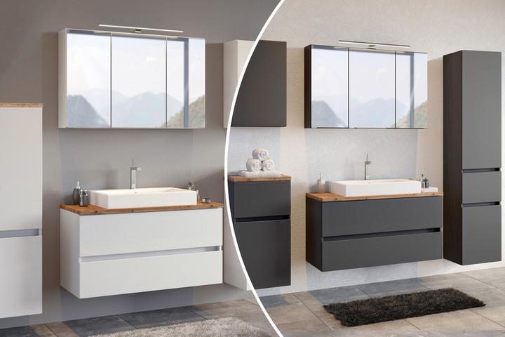 Natürlich sind die Badmöbel Sets aus diversen Materialen gefertigt, Robuste Holzmöbel in Naturfarben mit Maserung gehören ebenso zum Sortiment wie moderne Badezimmermöbel mit Hochglanzfronten. Auch wer sich für besondere Wohntrends interessiert, geht bei mömax sicher nicht leer aus. Sie wollen unbedingt Badmöbel im Landhausstil? Mit den Badezimmerprogrammen aus unserem Onlineshop setzen sie mit den schlicht weißen Möbeln tolle Landhaus-Akzente in Ihrer Nasszelle. Wählen Sie Ihr Lieblingsdesign und zaubern Sie aus Ihrem Badezimmer eine echte Oase. Hier sind garantiert für jeden Geshmack die richtigen Badmöbel dabei.