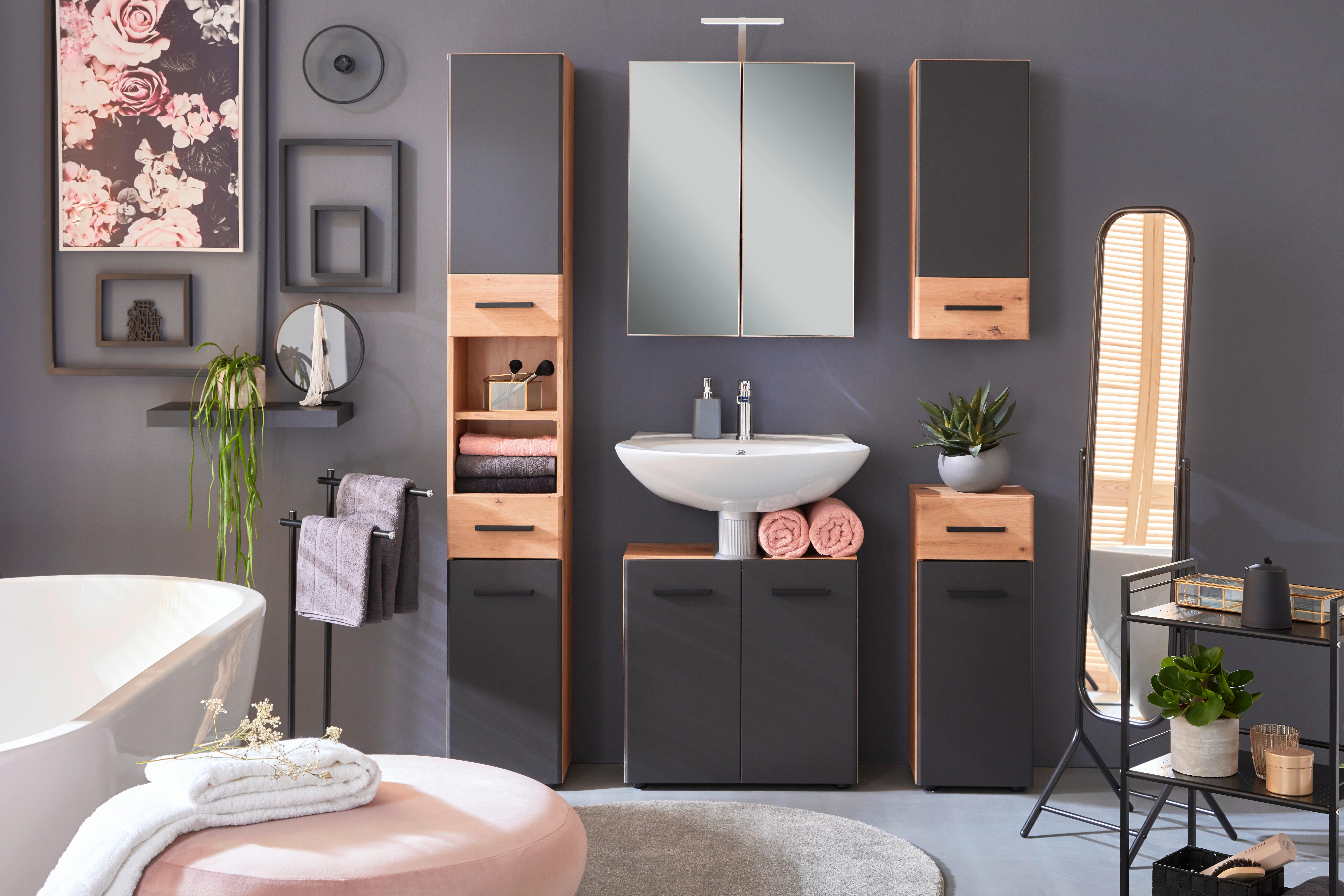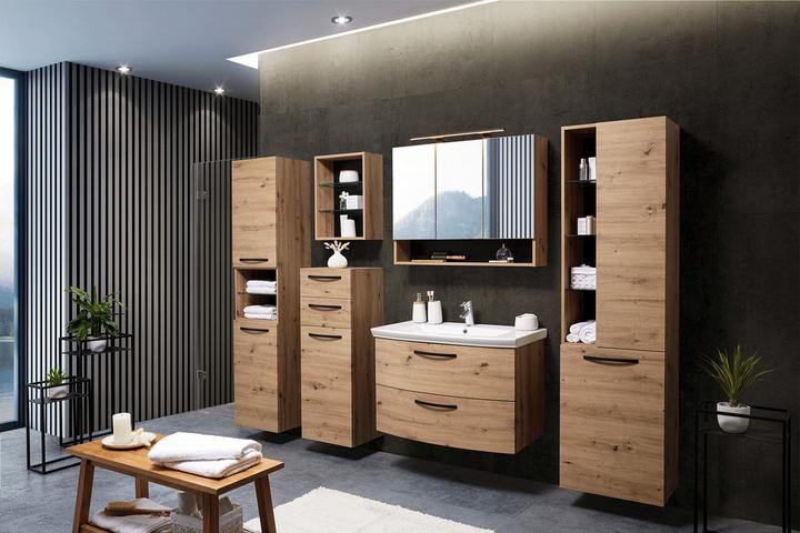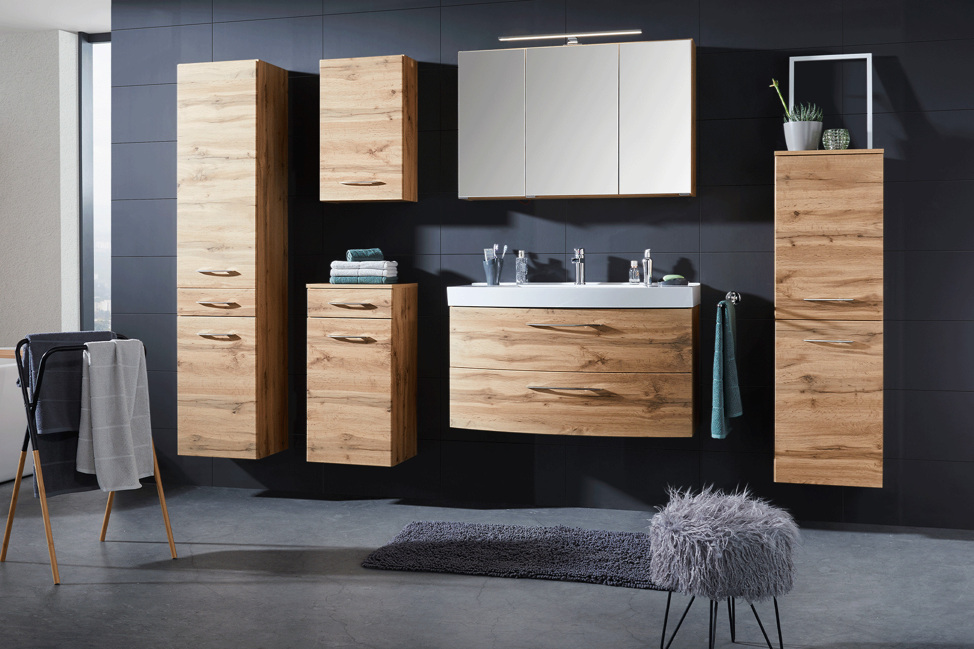 Ihr Bad hat mehr verdient als sein Dasein bloß als langweilige Nasszelle zu fristen. Denn im Badezimmer halten wir uns insgesamt ca. 1 jahr unseres Lebens auf - das ist ganz schön viel Zeit. Ken Wunder, denn das Bad ist meist der erst und letzte Raum, den wir vor dem Aufstehen und Zubettgehen, betreten. Hier werden wir wach und machen uns ebenso bettfertig. Das Bad sollte deshalb eine Oase sein! Und durch nichts gelingt das leichter als mit einem Badezimmerprogramm. Ein Badmöbel Set beinhaltet perfekt aufeinander abgestimmte Möbel. So geht Badgestaltung im Handumdrehen! Wer eine Badezimmerserie für übertrieben hält, liegt falsch. Denn hier sollten Sie sich wirklich wohlfühlen. Entspannt ein Schaumbad nehmen oder in Ruhe die Haare frisieren - dafür braucht man eine angenehme Atmosphäre. Die wird Ihnen mithilfe von einem Badezimmerprogramm geboten. Nichts wirkt im Gesamtbild so stimmig wie Hängeschrank, Spiegel und Waschbeckenkombi im gleichen stillvollen Design. mömax bietet Ihnen eine vielfältige Auswahl an verschiedensten Modellen. Hier sind garantiert für jeden Geschmack die richtigen Badmöbel dabei.