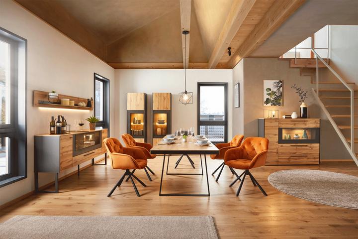 Das Esszimmer ist nahezu in jedem Haus der Dreh- und Angelpunkt. Denn hier findet alles statt: vom perfekten Dinner über den Spieleabend bis hin zum Sonntagsbrunch. Im Esszimmer kommen alle zusammen und das nicht nur zu den Festtagen! Der Essbereich eignet sich einfach hervorragend für so vieles, wie essen, lachen und quatschen. Wichtigstes Möbelstück ist dabei natürlich der Esstisch. Ohne den geht nichts! Trotzdem sollten Sie auch bei den anderen Möbeln Wert darauf legen, dass diese zu Ihrem Esszimmer passen. Ganz leicht gelingt das mit den cleveren Esszimmerprogrammen von mömax.