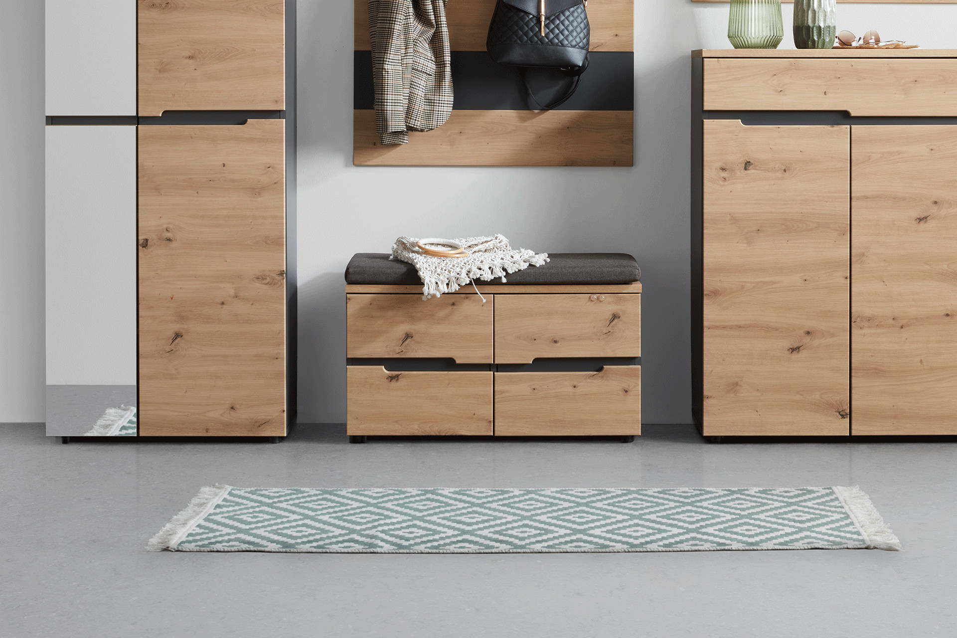 - Ablagefläche: Hier können Sie Schlüssel, Geldbörse und Post beim Heimkommen schnell ablegen – und später wiederfinden!