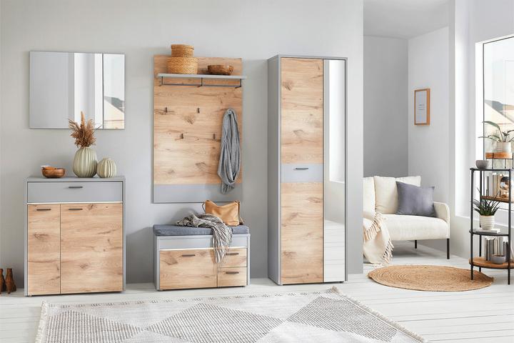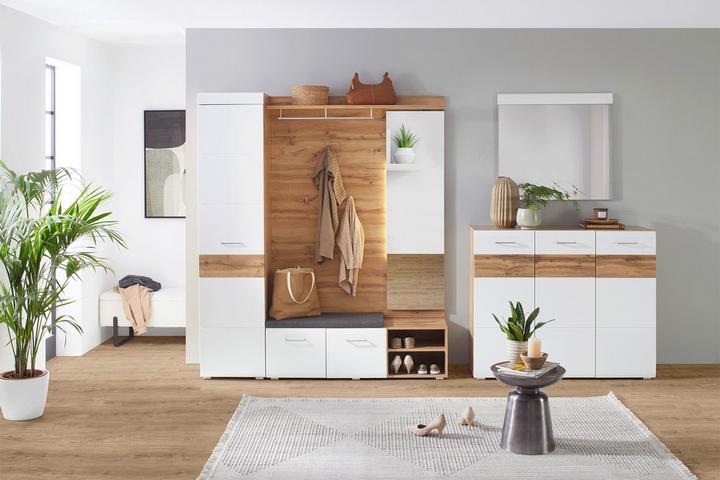 Wer mit Garderobenserien endlich ein stimmungsvolles Gesamtbild schaffen will, ist hier richtig. Das Vorzimmer Programm besitzt natürlich viele optische Vorteile, da es im Flur endlich für eine angenehme Atmosphäre sorgt. Zusätzlich ist das Garderoben Set aber auch clever aufgeteilt. Je nachdem wie viel Platz Ihnen daheim im Vorzimmer zur Verfügung steht, wählen Sie das passende Programm. Für jede Raumgröße gibt es die passende Garderobenserie. Jetzt selbst überzeugen - Moderne Garderoben gibt's bei mömax schon zum kleinen Preis!