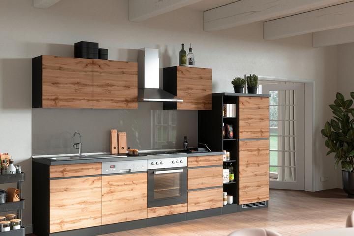 - Umbauschränke und Blenden sorgen dafür, dass sich Ihre Elektrogeräte schön ins Gesamtbild einfügen. Selbstverständlich können Sie Ihre Modulküche auch ohne Geräte zusammenstellen und Ihre alten weiterverwenden.