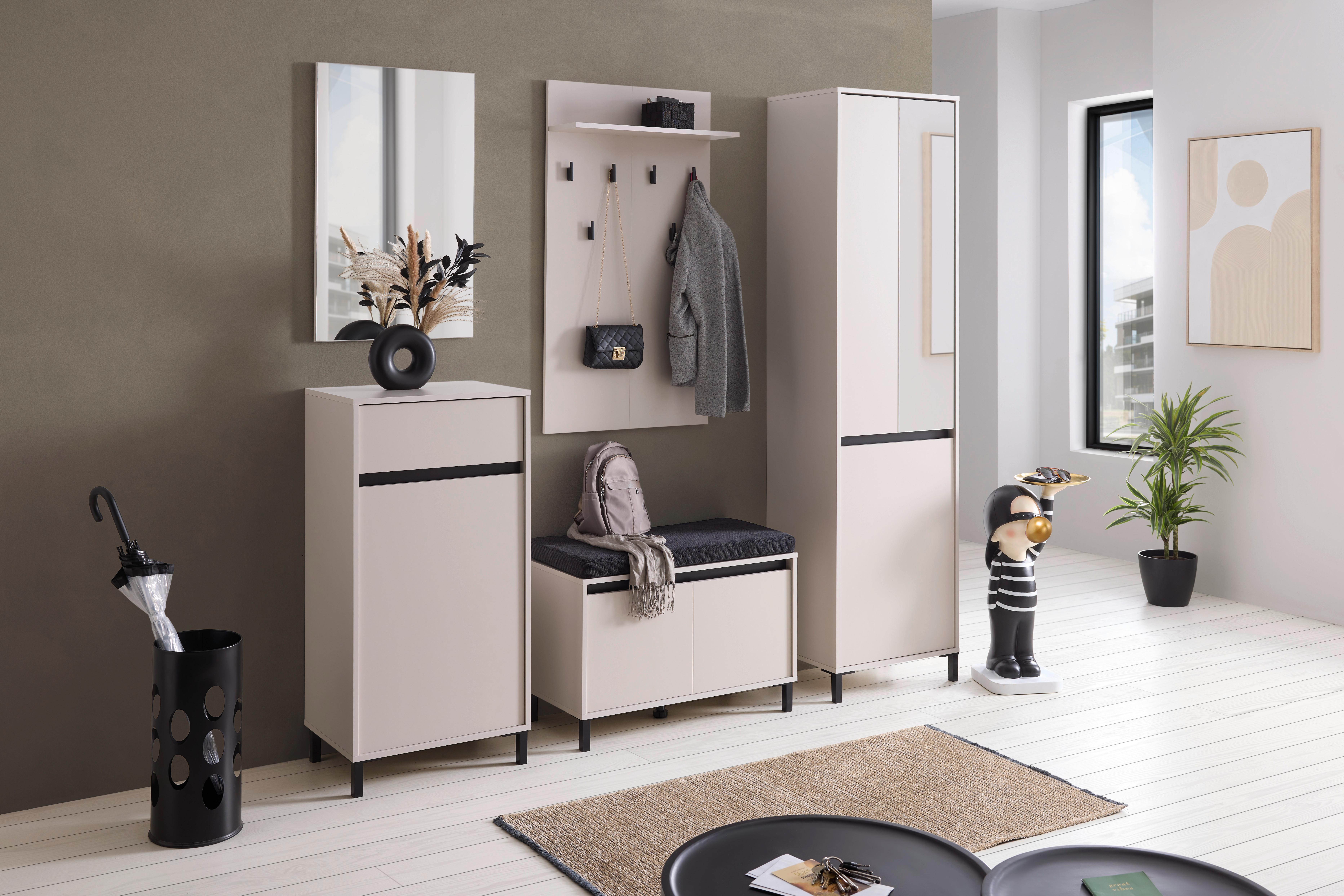 Die Garderobenserie Arran in der edlen Farbe Kaschmir vereint modernes Design mit praktischer Funktionalität. Die warmen, sandigen Kaschmir-Töne schaffen eine einladende Atmosphäre im Eingangsbereich und lassen selbst kleine Flure größer und harmonischer wirken.