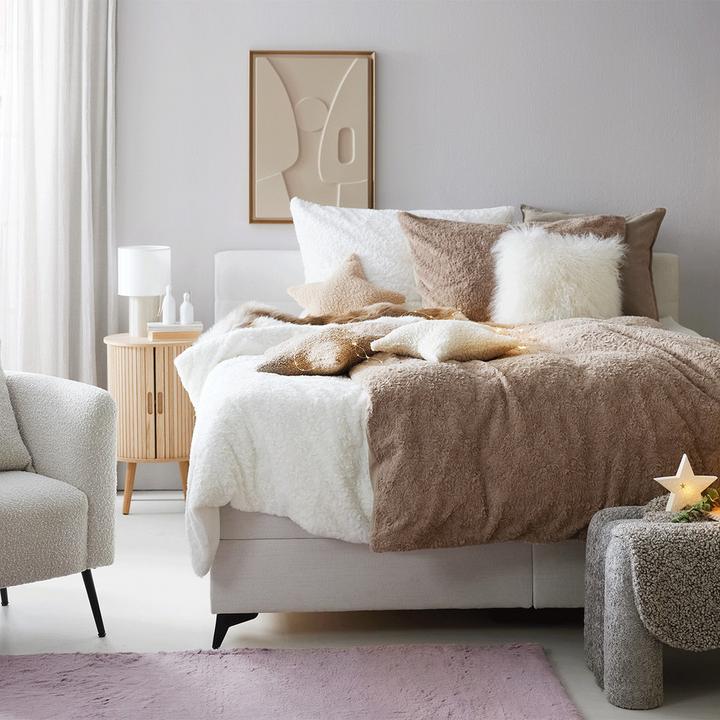 Zeitloses Weiß vereint sich mit zarten Tönen wie Beige und Beere, während warmes Holz und kuscheliges Fell einen bezaubernden Kontrast schaffen. Stilvolles Interieur und fantasievolle Dekorationen laden zum Träumen ein und kreieren eine romantische, elegante sowie gemütliche Atmosphäre. Kommen Sie zur Ruhe, erden Sie sich und Ihr Zuhause, und lassen Sie es im zauberhaften Glanz von Shiny Christmas erstrahlen.
