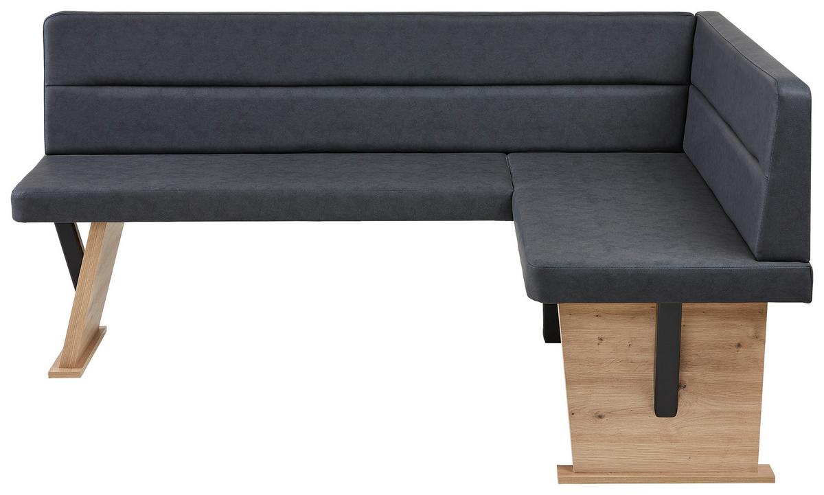 Nutzen Sie die vorhandene Raumfläche optimal aus und platzieren diese moderne Eckbank mit wangenförmigen Füßen in Ihrer Küche oder im Esszimmer. Die praktische wie schöne Sitzgelegenheit aus Holz Dekor in Eiche Artisan und mit einem Lederlook in Schwarz misst etwa 181 x 85 x 141 cm (B x H x T).
