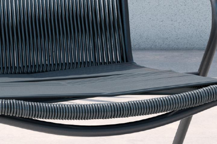 Die Sitzfläche besteht aus einer strapazierfähigen Kunststoffbespannung, die speziell für den Einsatz im Außenbereich entwickelt wurde. Das Material ist nicht nur reißfest und formstabil, sondern auch wetterfest und UV-beständig. Dadurch bleibt es auch bei intensiver Sonneneinstrahlung farbecht und flexibel, ohne zu spröde oder porös zu werden. Zudem sorgt die luftdurchlässige Struktur für ein angenehmes Sitzgefühl – selbst an heißen Tagen.