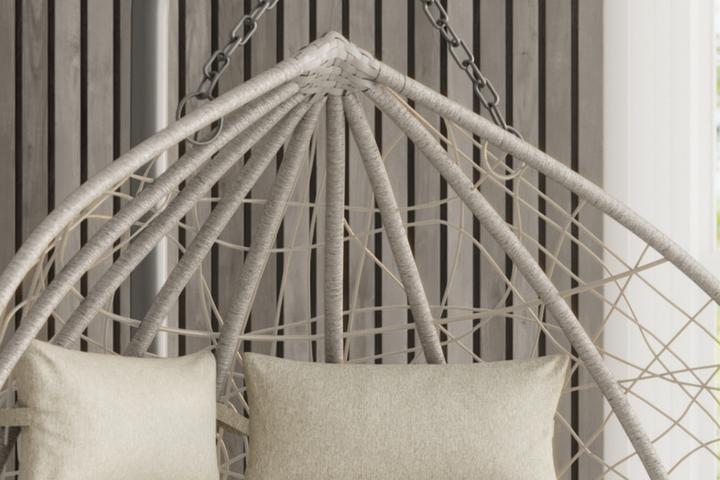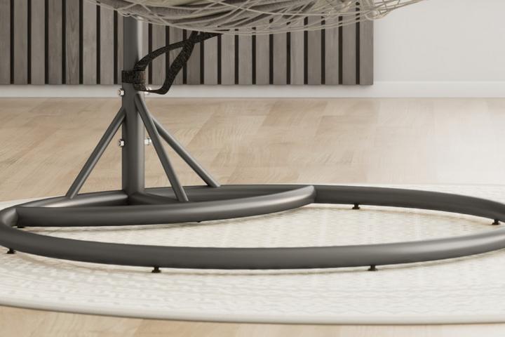 Das robuste Gestell dieses Hängesessels vereint zeitlose Eleganz mit höchster Funktionalität. Gefertigt aus hochwertigem, pulverbeschichtetem Stahl in stilvollem Grau, bietet es eine solide und sichere Basis für entspannte Stunden. Neben seiner Stabilität begeistert das Gestell mit seinem schlanken, modernen Design, das sich harmonisch in jede Umgebung einfügt. Die sanften Schaukelbewegungen laden zum Abschalten und Genießen ein.