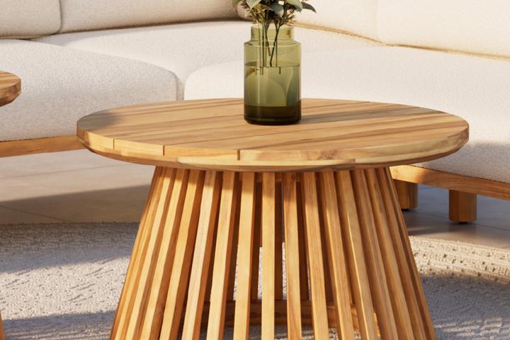 Diese beiden Tische aus massivem Akazienholz vereinen ästhetische Schönheit mit außergewöhnlicher Stabilität und Langlebigkeit. Akazienholz ist bekannt für seine dichte, harte Struktur, die es besonders widerstandsfähig gegenüber Witterungseinflüssen und Abnutzung macht. Es bietet eine natürliche, warme Ausstrahlung, die in jedem Raum oder Garten eine einladende Atmosphäre schafft. Die spezielle Beschaffenheit des Akazienholzes macht es nicht nur zu einem optischen Highlight, sondern auch zu einem langlebigen Material für Möbel. Mit diesen Tischen bringen bringen sie zeitlose Eleganz in Ihr Zuhause.