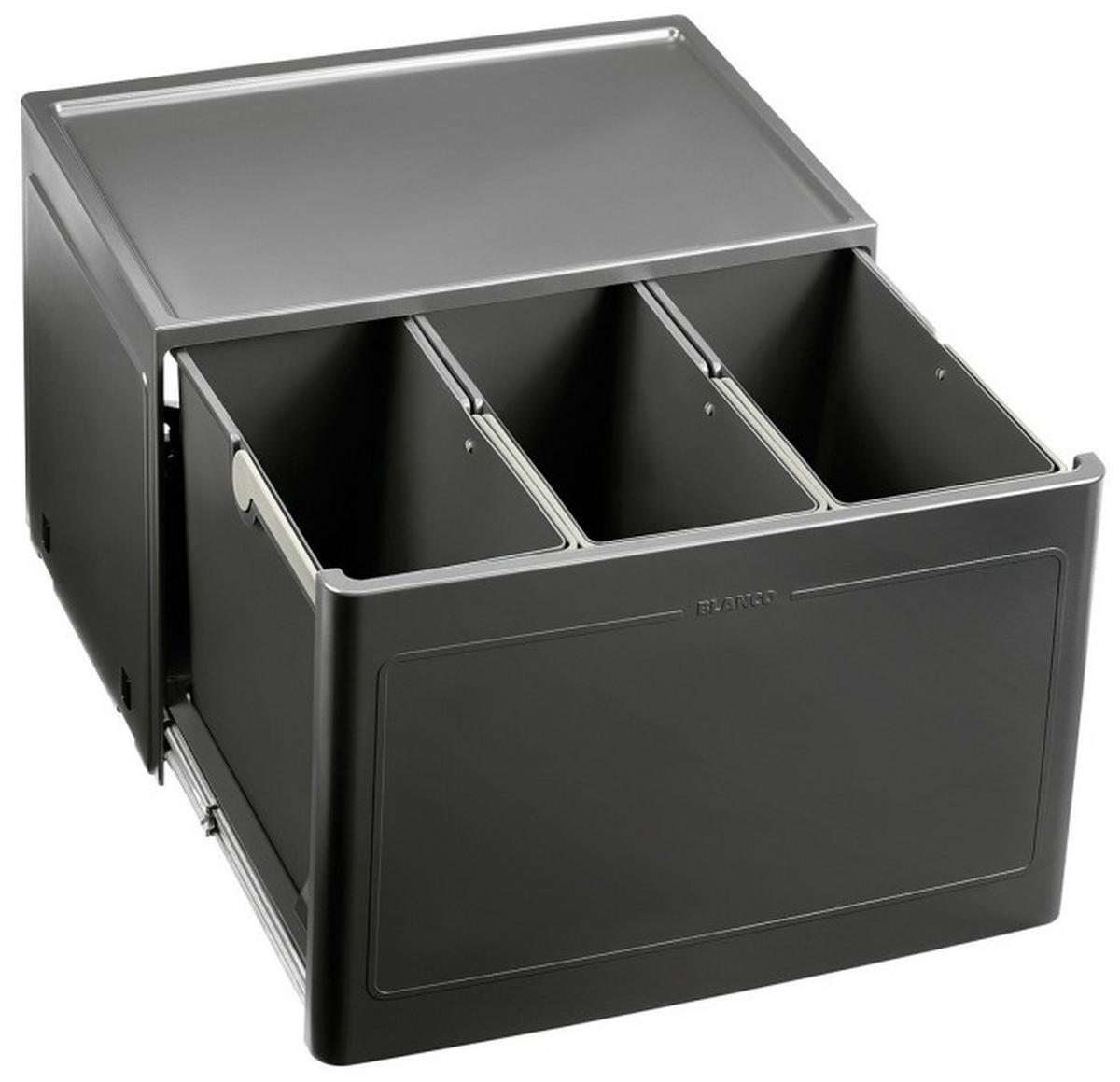 Wenn Mülltrennung doch immer so einfach wäre wie mit dem praktischen Einbauabfallsammler von BLANCO. Der etwa 55,8 x 35 x 75 cm (B x H x T) große Abfallsammler aus Kunststoff besitzt 3 Behälter mit einem Fassungsvermögen von ca. 13L. Diese können getrennt voneinander entleert werden und erleichtern das tägliche Trennen von Recyclingmaterial und Küchenreste.