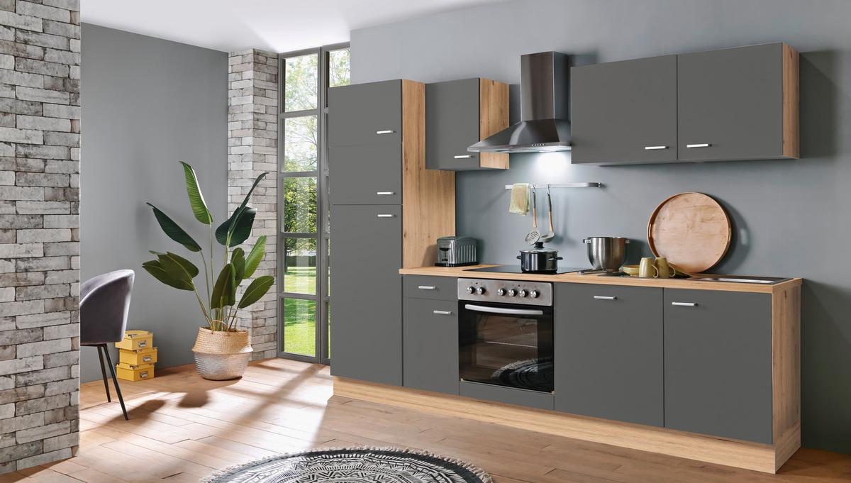 Küchenblock Aritsan-Classic Grau B: ca. 270 cm - Silberfarben/Graphitfarben, KONVENTIONELL, Holzwerkstoff/Kunststoff (270cm) - Menke