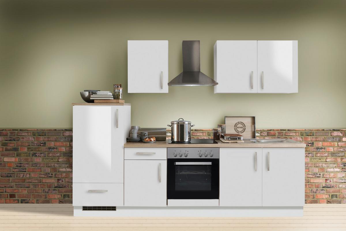 Küchenblock Premium Grau/Weiß B: ca. 270 cn - Weiß Hochglanz/Silberfarben, KONVENTIONELL, Holzwerkstoff/Metall (270cm) - Menke
