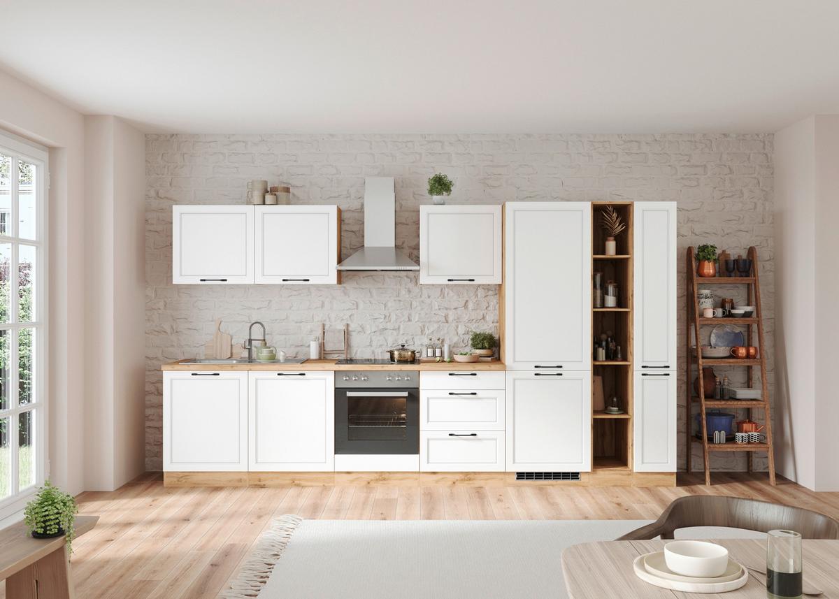 Küchenzeile Meran mit Geräten ca. 360cm Weiß/Eiche