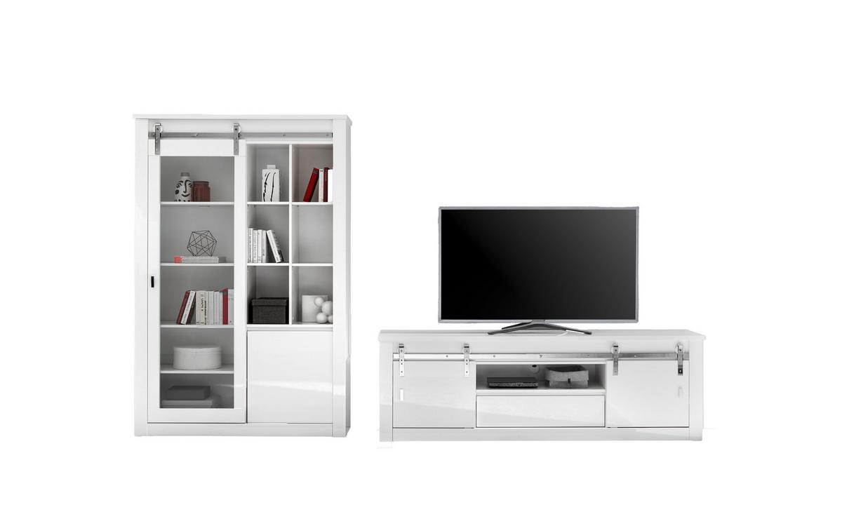 Wohnwand Daytona Weiß/Weiß Hochglanz