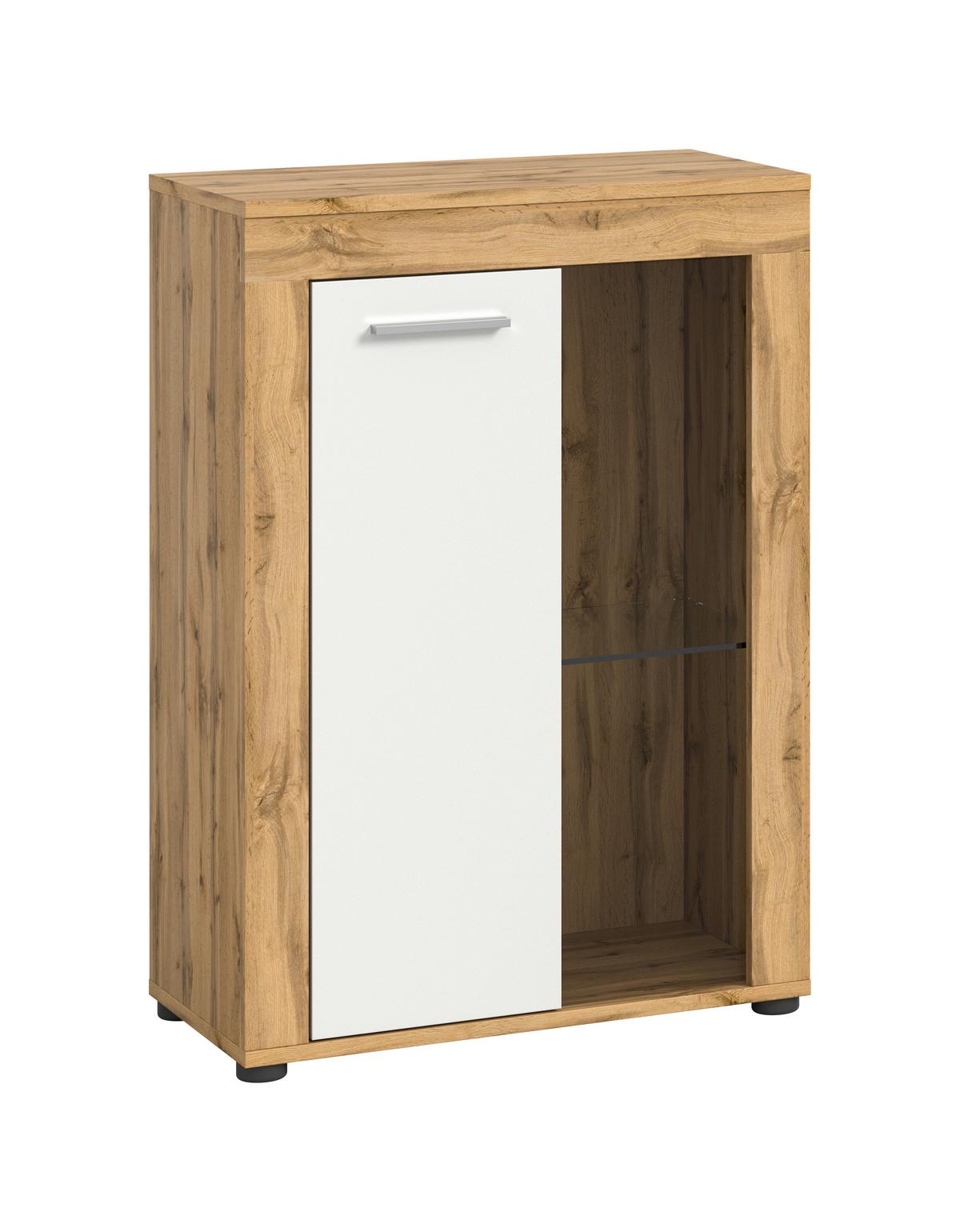 Vitrine Jam ca. 86x60x35 cm Weiß - Eiche Wotan/Silberfarben, Design, Glas/Holzwerkstoff (86/60/35cm) - MID.YOUMID.YOU