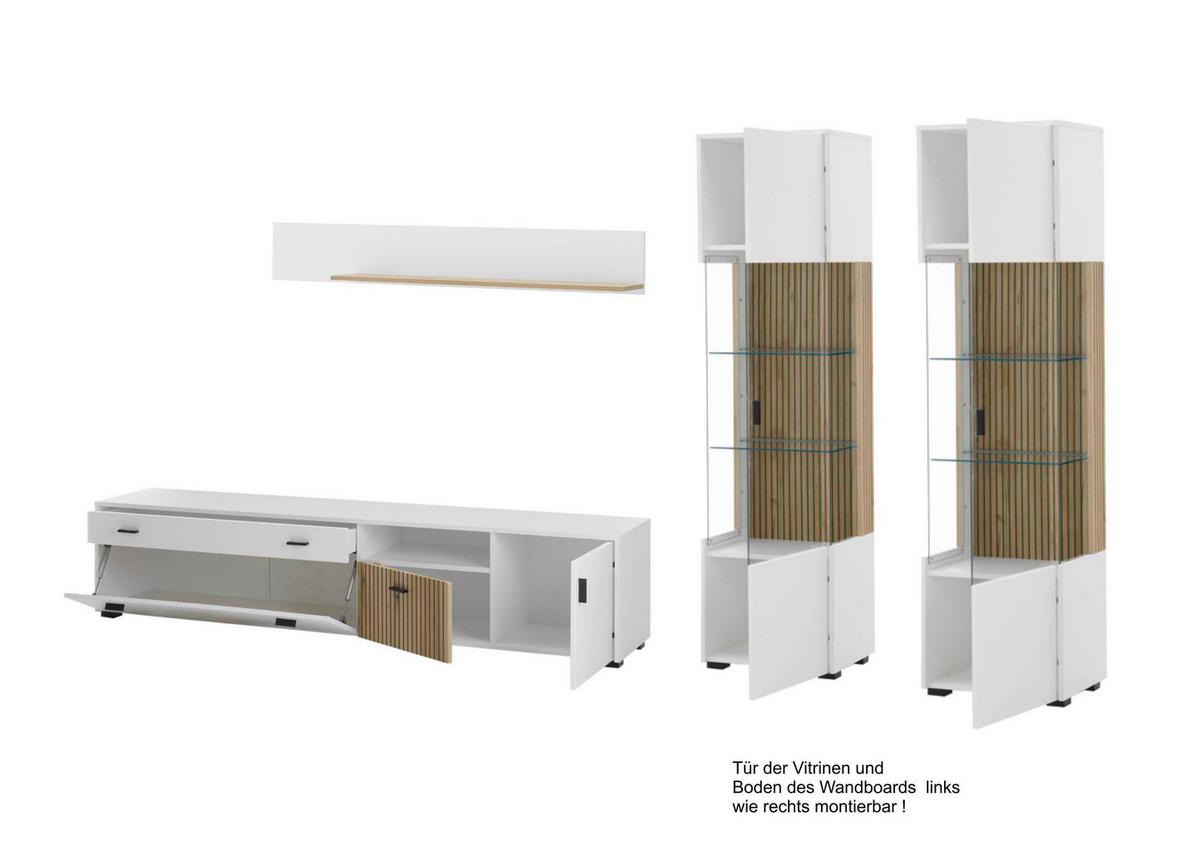 Wohnwand Hudson Weiß/Eichefarben - Eichefarben/Schwarz, Design, Glas/Holzwerkstoff (316/180/42cm) - MID.YOUMID.YOU