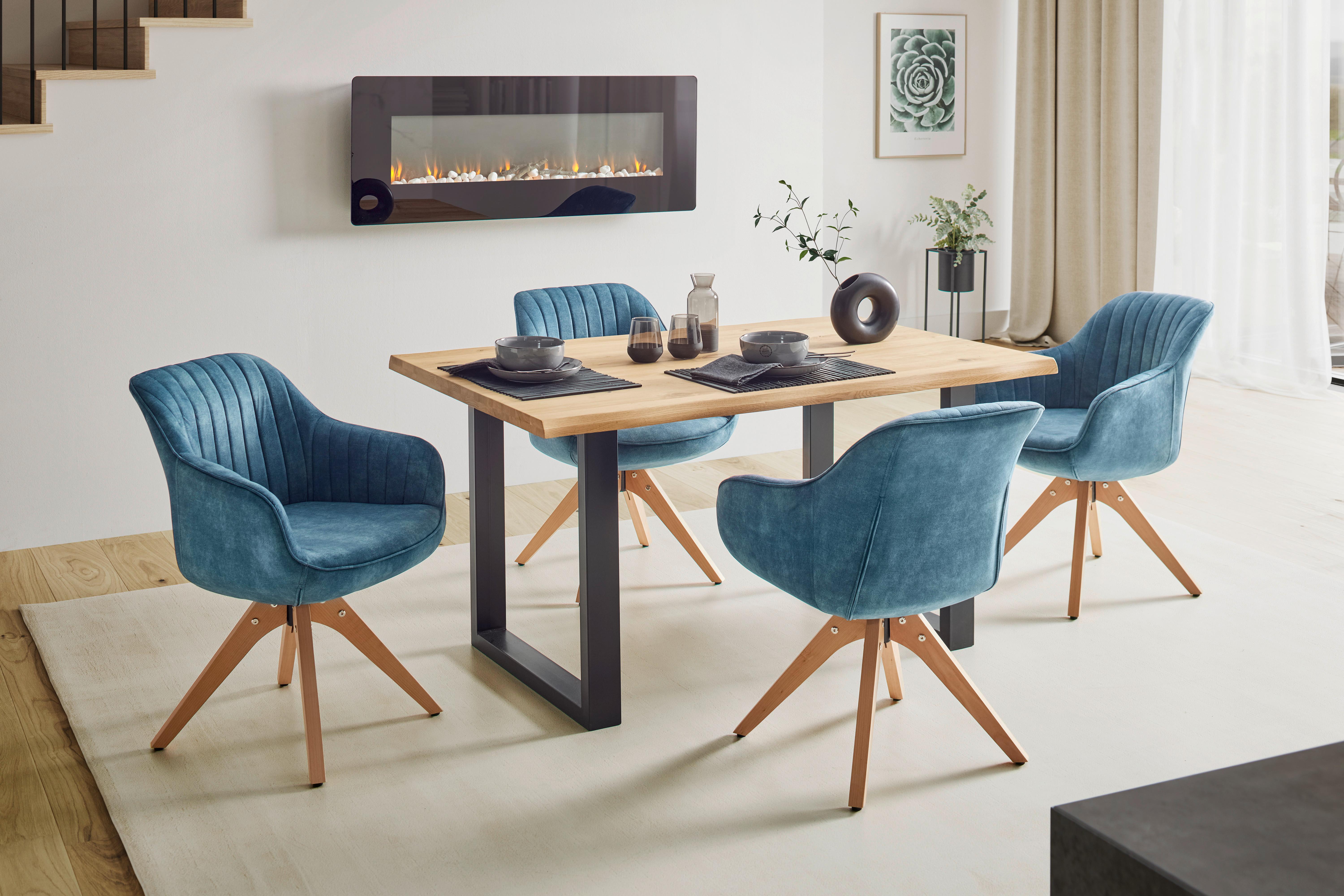 Das stabile Drehkreuzgestell aus Echtholz Buche verleiht dem Stuhl eine edle Optik und sorgt für sicheren Stand. Die drehbare Sitzfläche bietet zusätzlichen Komfort und Bewegungsfreiheit – ideal, um sich bequem zu drehen, ohne den Stuhl zu verrücken. So entsteht ein funktionaler Blickfang, der modernes Design mit wohnlichem Charakter perfekt verbindet.