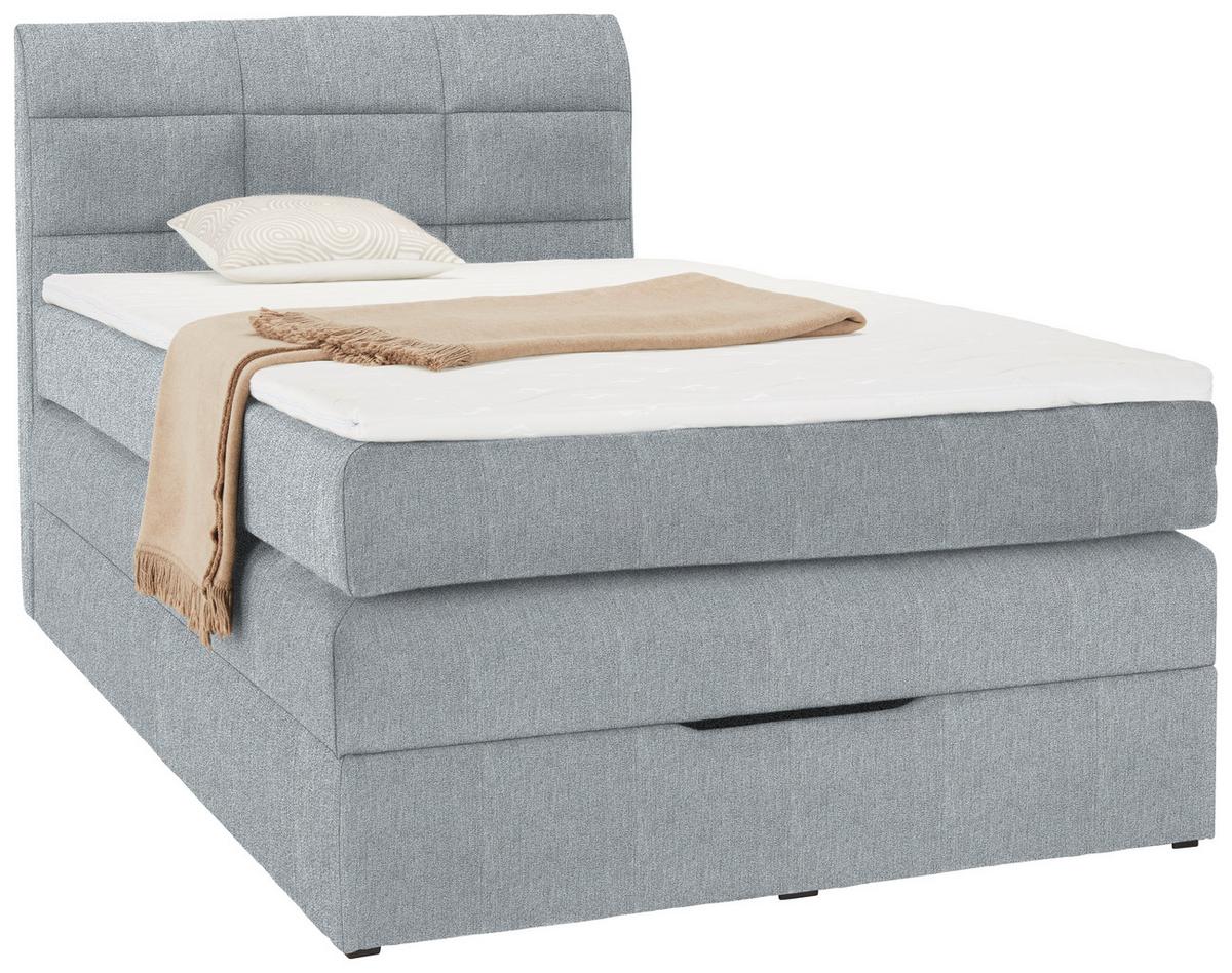 Das Boxspringbett in Hellgrau mit einer Liegefläche von ca. 90 x 200 cm vereint stilvolles Design mit praktischem Stauraum. Das gepolsterte Kopfteil (ca. 90 x 112 cm) in Hellgrau mit eleganter Ziernaht setzt moderne Akzente und bietet gleichzeitig komfortable Rückenunterstützung beim Lesen oder Entspannen. Mit einer Liegehöhe von ca. 60 cm ermöglicht das Bett einen bequemen Ein- und Ausstieg, während der integrierte Bettkasten zusätzlichen Stauraum für Bettwäsche oder Decken bietet. Die Box (ca. 40 cm hoch) mit Bonellfederkern und Polyurethanschaumkern sorgt für Stabilität und langlebigen Komfort.