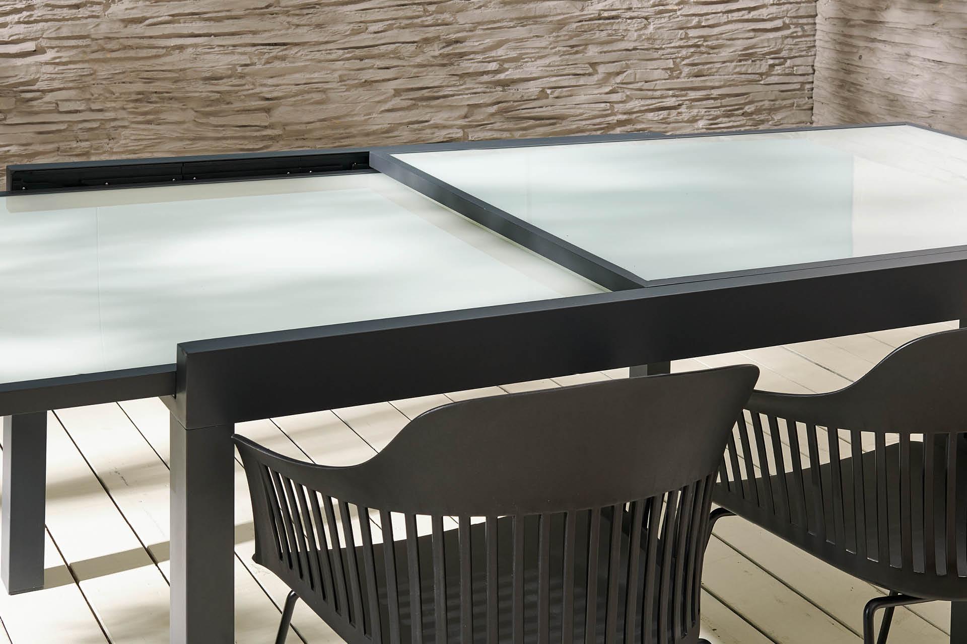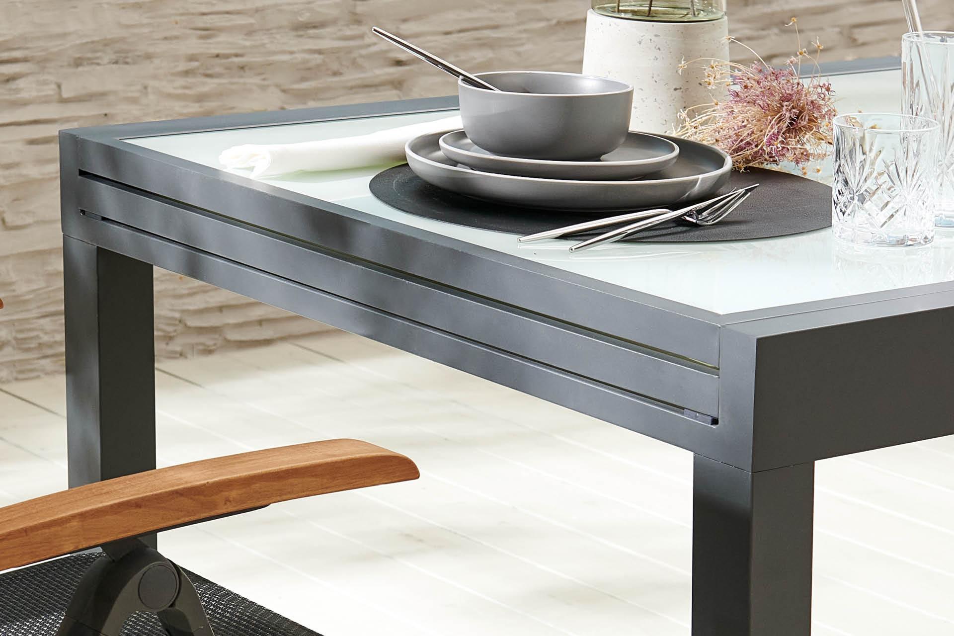 Gartentisch mit Alugestell - mit ausziehbarer Milchglasplatte