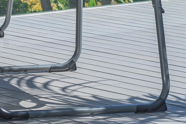 Die Liege ist pflegeleicht, schnelltrocknend und wasserfest – ideal für den täglichen Einsatz im Freien. Das hochwertige Textilgewebe lässt sich mühelos reinigen und trocknet nach einem Regenschauer in kürzester Zeit. Für sicheren Halt sorgt der stabile, rutschfeste Stand – auch auf glatten oder unebenen Untergründen. Die Beine bestehen aus pulverbeschichtetem Metall, das nicht nur rostbeständig und äußerst langlebig ist, sondern auch mit seiner matten Oberfläche perfekt zum anthrazitfarbenen Bezug passt.
