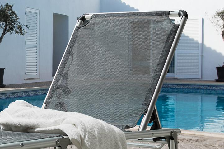 Die verstellbare Rückenlehne lässt sich individuell anpassen, sodass Sie je nach Wunsch sitzen, entspannen oder komplett zurücklehnen können – perfekt für Sonnenbäder oder eine kleine Auszeit im Schatten. Die Liegefläche besteht aus strapazierfähiger Netzbespannung, die nicht nur angenehm luftdurchlässig ist, sondern auch wetterfest und pflegeleicht. Selbst bei intensiver Nutzung bleibt das Material formstabil und trocknet schnell.