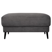 Der Korpus besteht aus Kiefernholz, während die schwarzen Winkelfüße aus mattem Stahl eine moderne Ästhetik verleihen. Die Bodenfreiheit von ca. 12 cm sorgt für eine luftige Optik und ermöglicht eine leichte Reinigung unter der Wohnlandschaft.