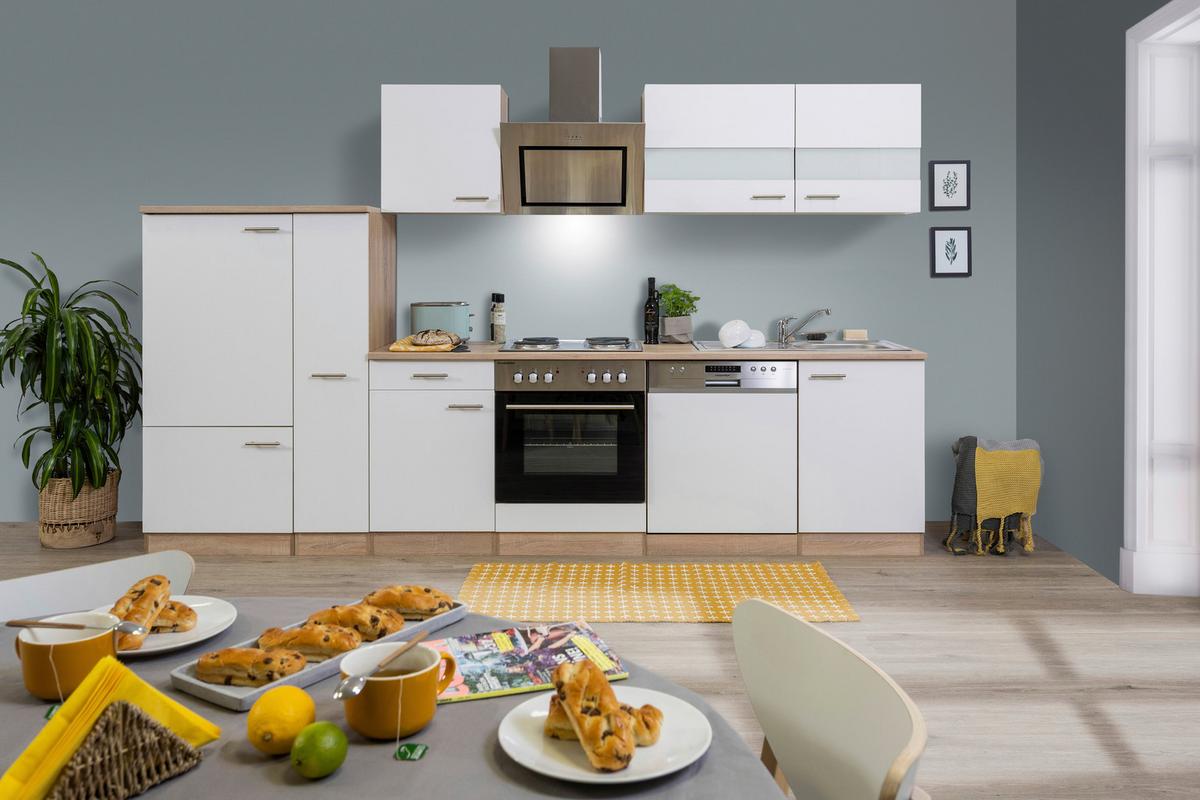 Küchenblock Merle mit Geräten ca. 310 cm Weiß - Edelstahlfarben/Eichefarben, Basics, Holzwerkstoff/Metall (310cm) - RespektaRespekta