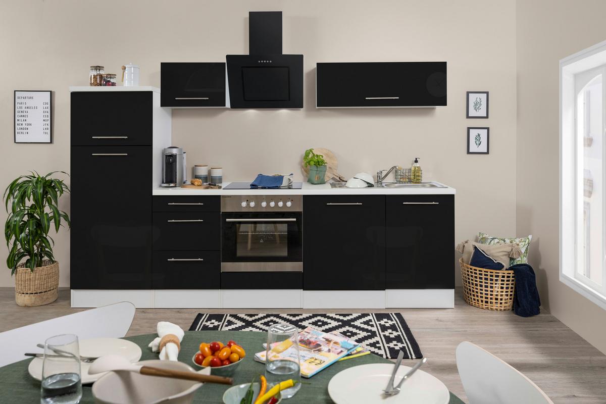 Respekta Küchenzeile mit Geräte Schwarz Hochglanz/Weiß B: ca. 280 cm