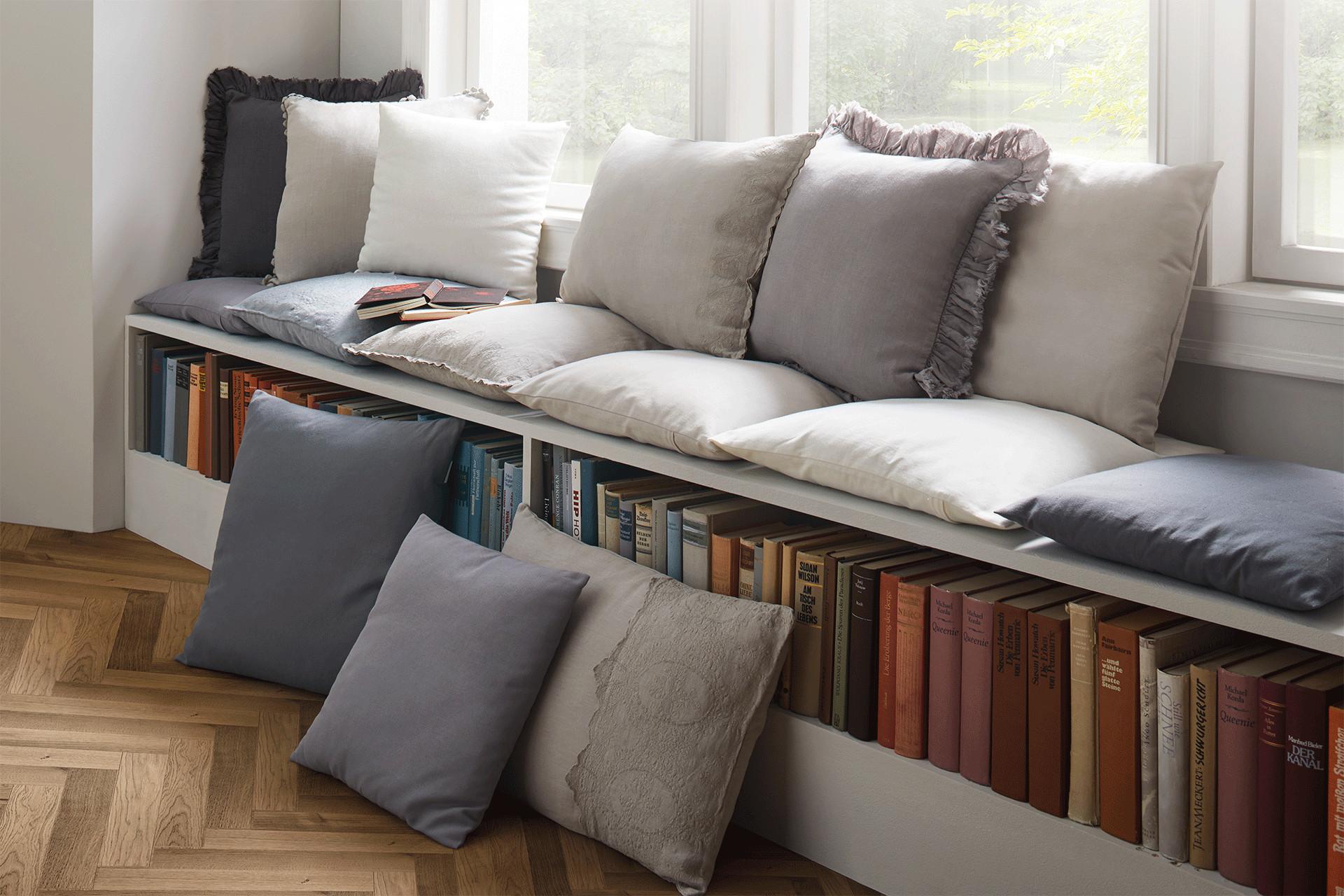 - Farbtupfer: In modern eingerichteten Wohnungen herrschen mit Schwarz, Weiß, Grau oder Beige oft eher dezente Farbtöne vor. Sitzkissen können das Interieur entweder auflockern oder das vorherrschende Farbkonzept unterstreichen.